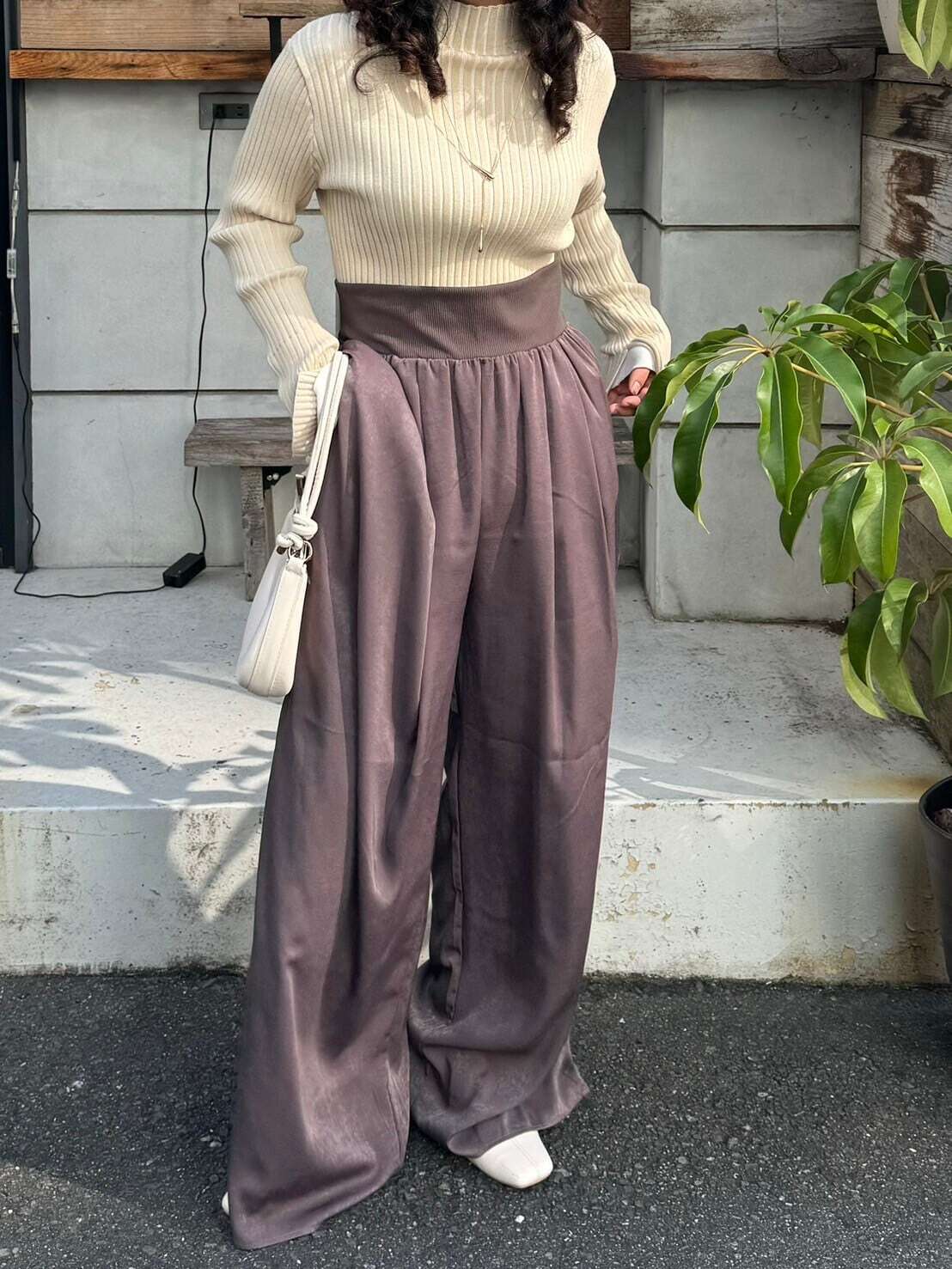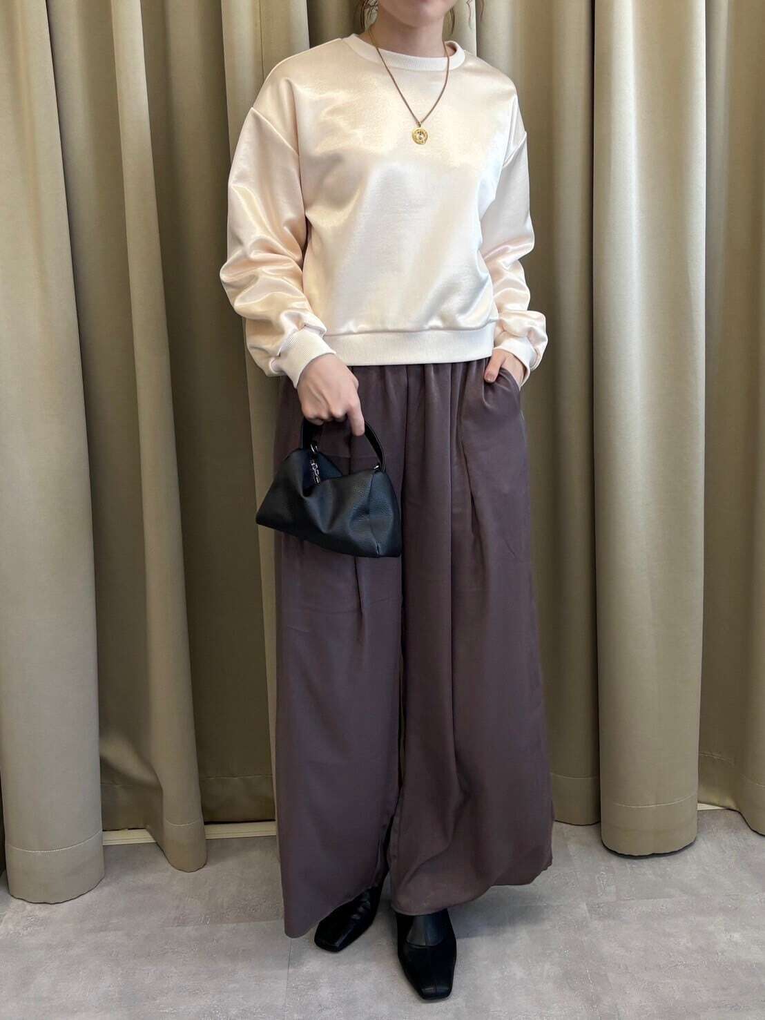 インをしてもアウトでもスタイリングが決まるパンツです。