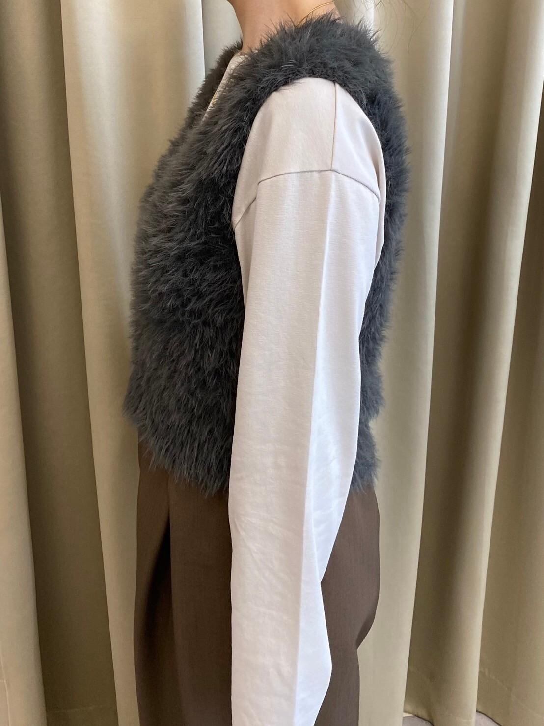 深Vネックで顔周りをすっきり見せてくれるアイテムです。