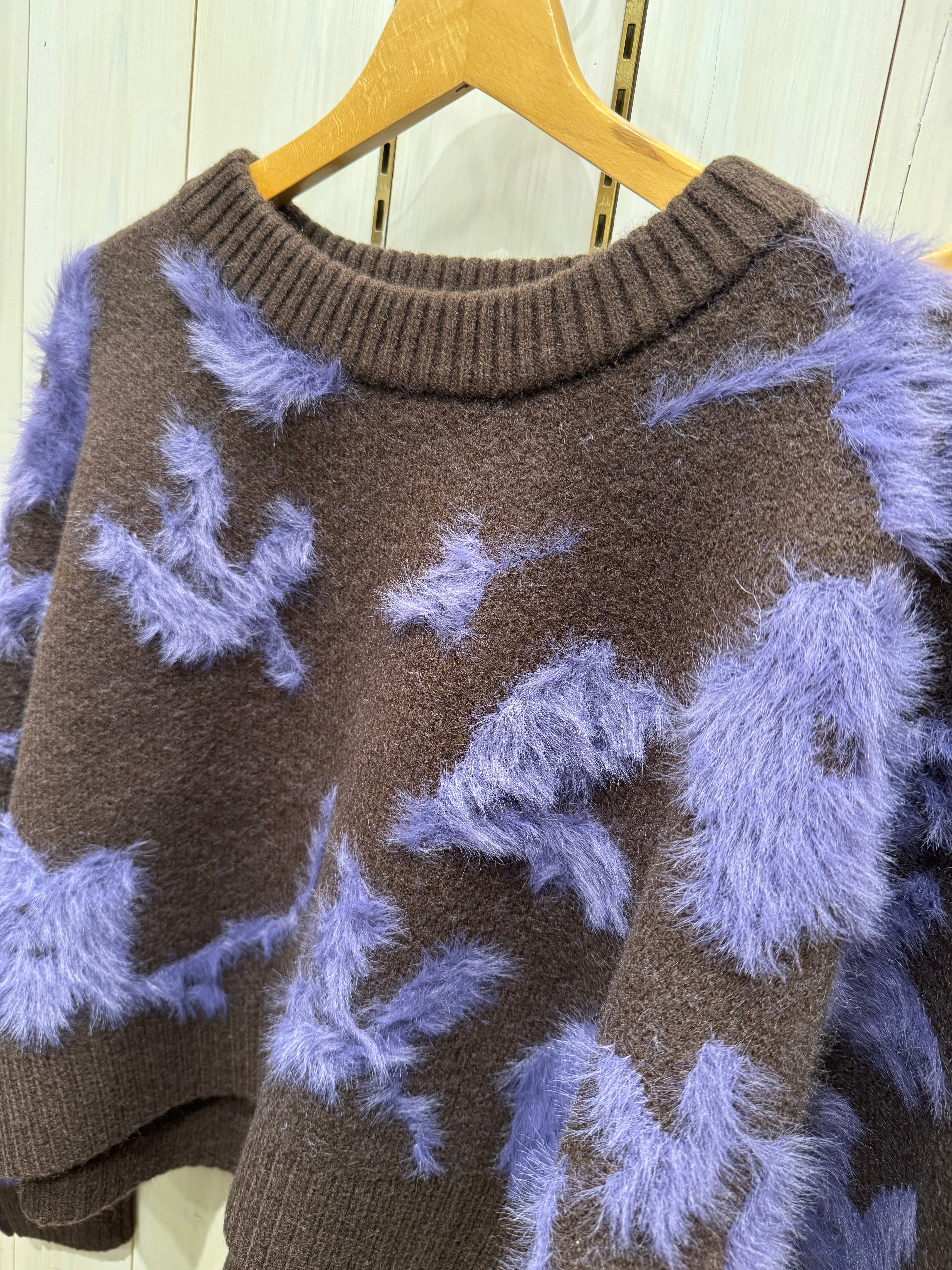 花柄部分がシャギーになったショート丈のニット。