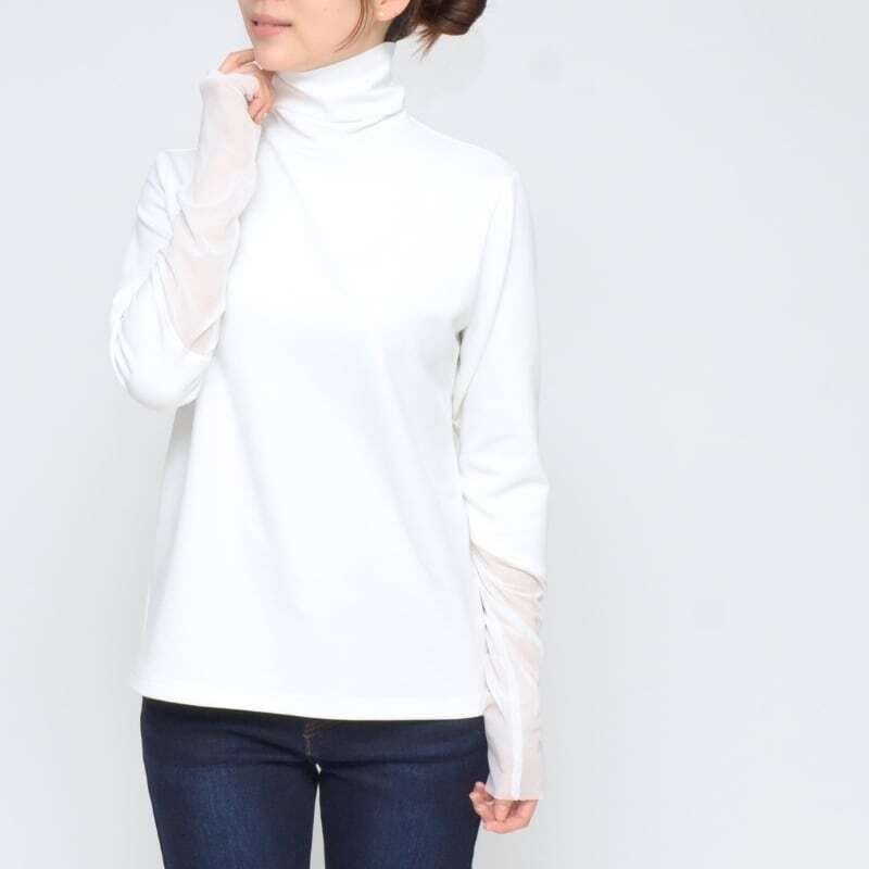 去年も大人気!袖チュール切替えデザインのハイネックインナー。