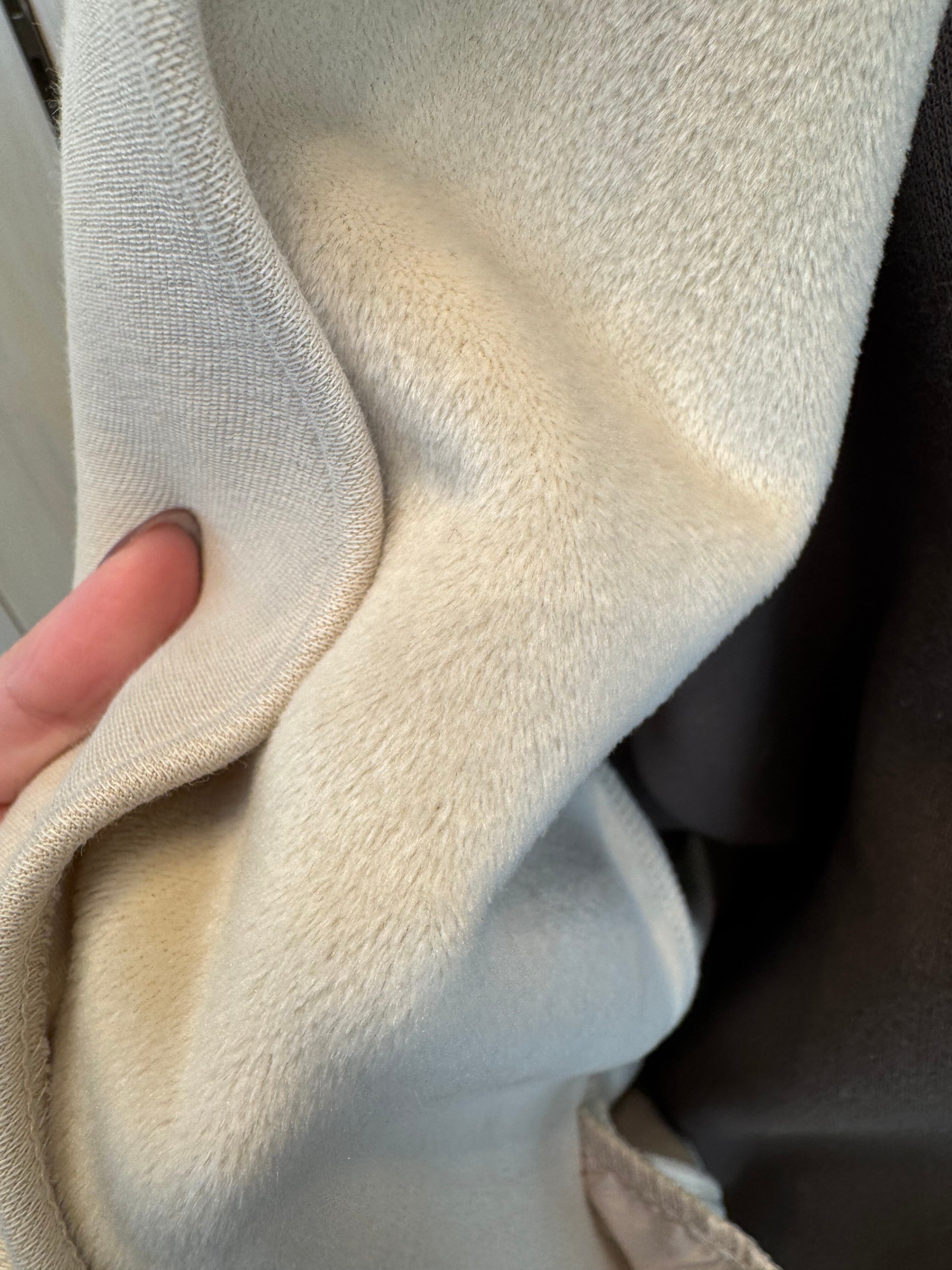 ハイパーフィット素材にマイクロベロアをボンディングした温かく肌触り非常にいい伸縮裏起毛素材×マットな表面感の薄手ウェザーのコート。