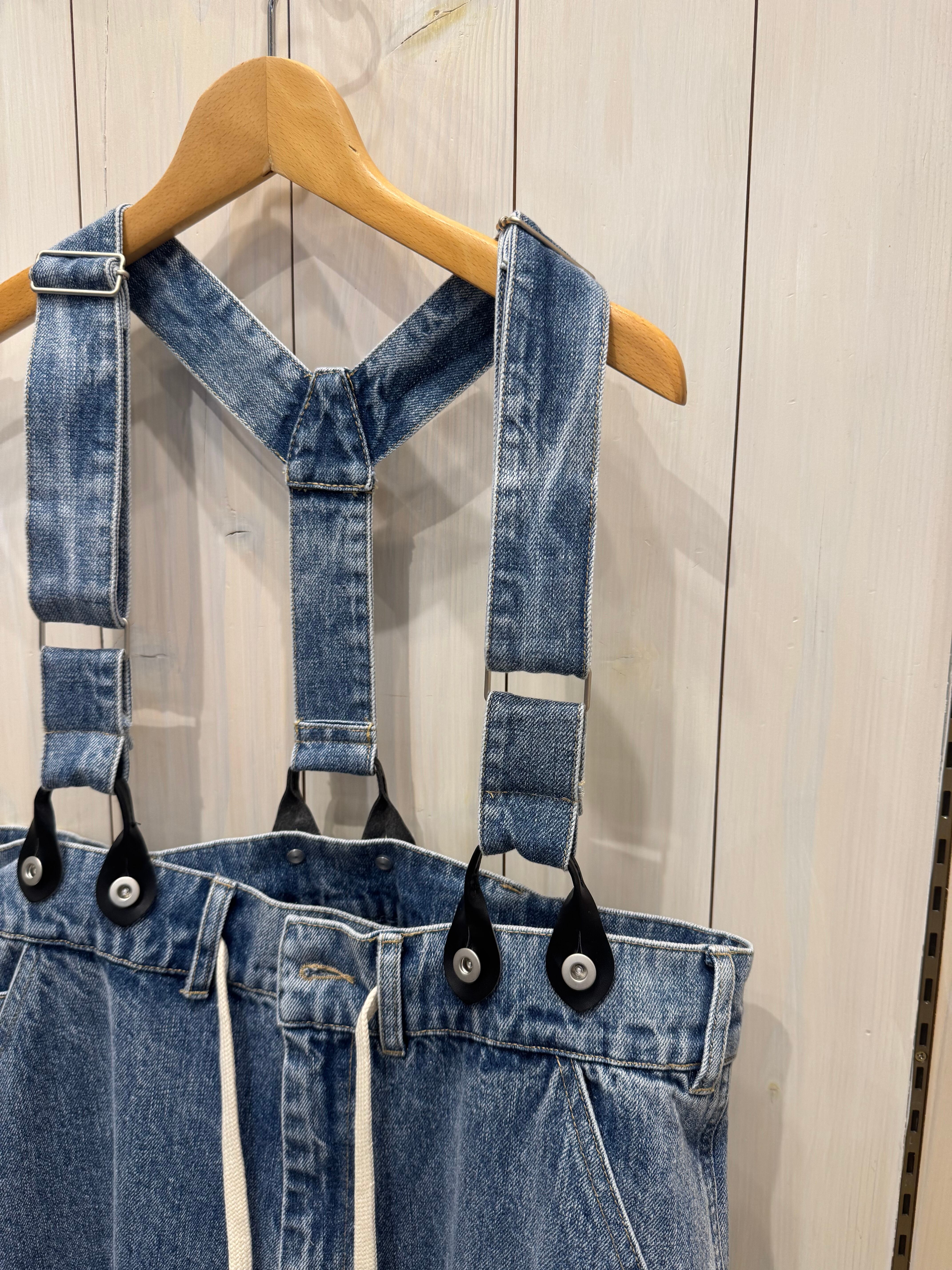ウエスト、脚周りがゆったりとしたワイドシルエットのデニムサロペット