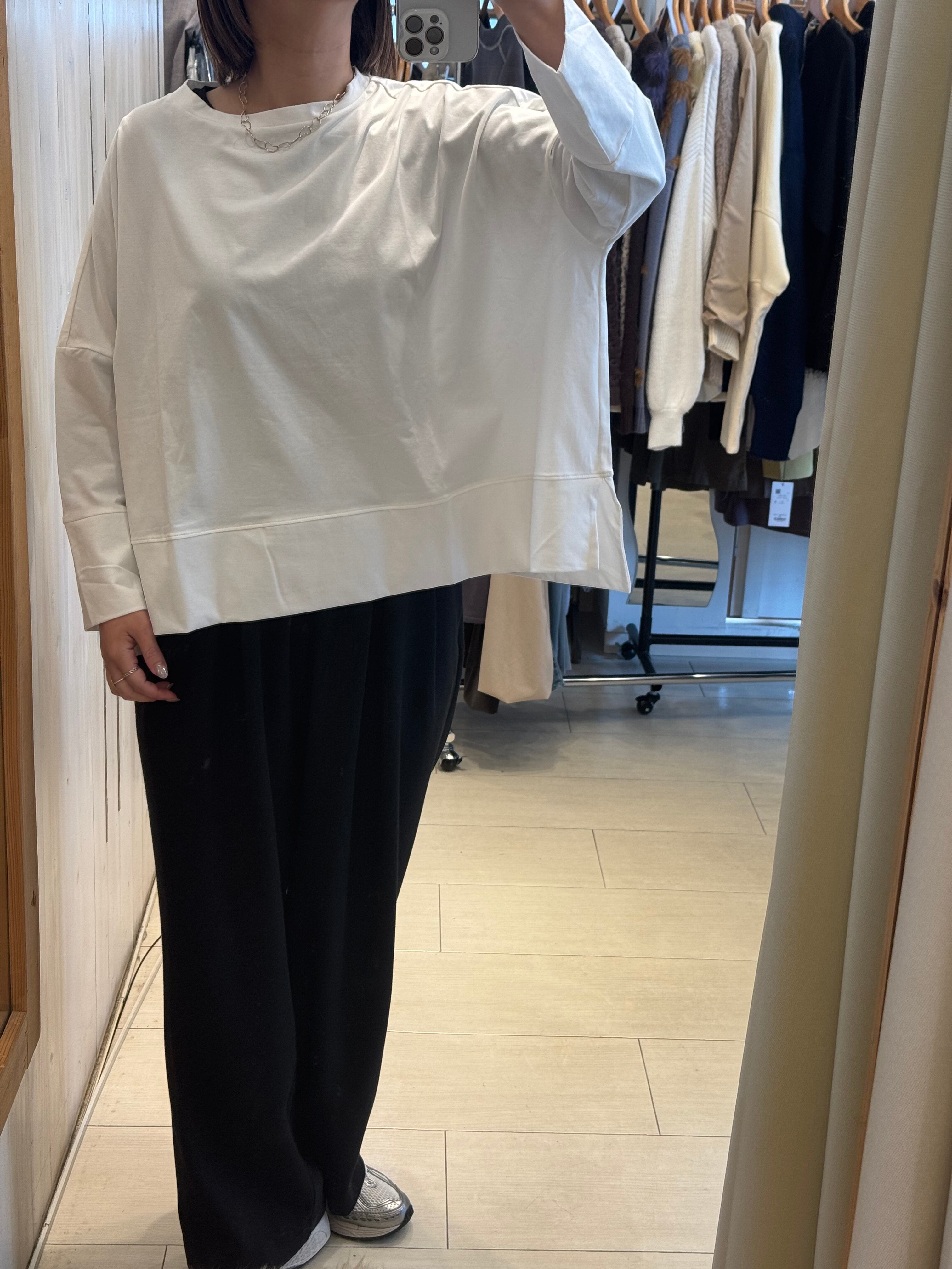 ゆったりとした身幅でストレスフリー。パンツ、スカートどちらでも合わせやすい1枚です。