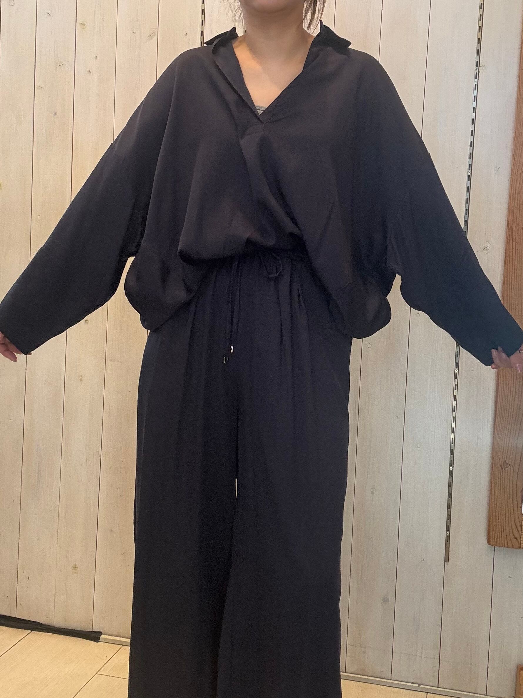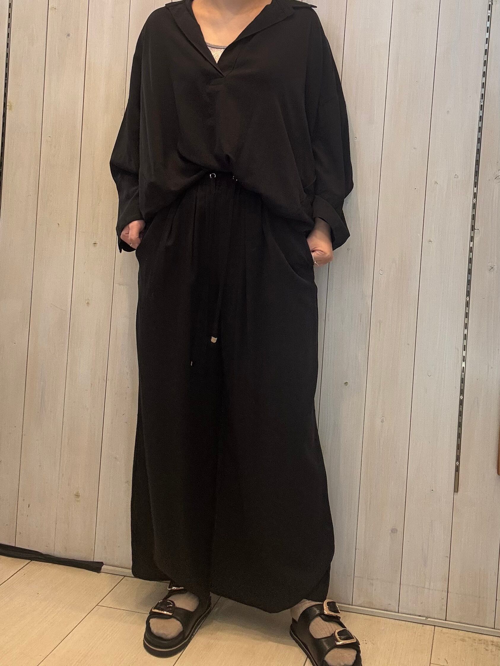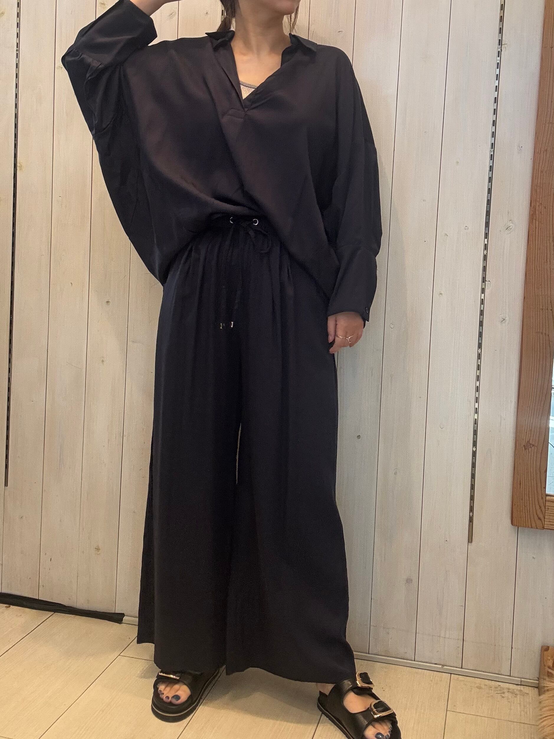 ナチュラルな落ち感と程よい光沢感のテンセルツイルのイージーパンツ。しなやかなドレープ◎